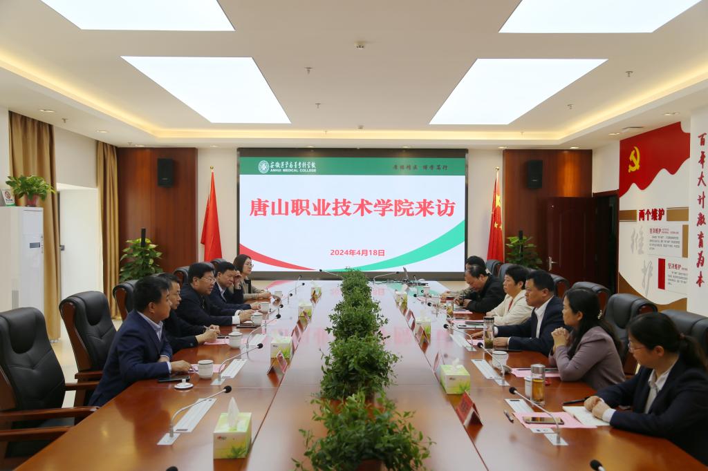 4月18日上午,唐山职业技术学院党委书记盛新丰一行来校调研交流。开云官方端网站登录入口党委书记董亚杰,党委委员、副校长严继贵等领导接待。双方开展座谈交流。
