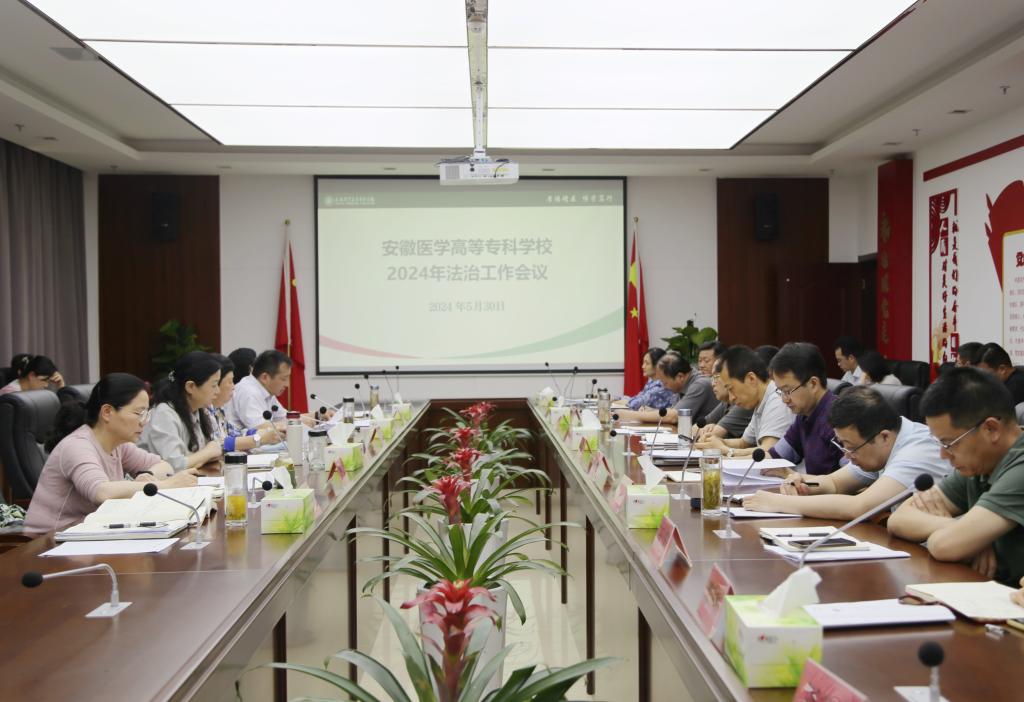 董亚杰指出,近年来学校深入学习贯彻习近平法治思想和习近平总书记关于教育、卫生健康的重要论述,坚持把依法治校作为学校治理的基本理念和基本方式,将法治工作融入办学治校全过程、各方面。学校治理体系和治理能力现代化水平显著提升,并且成功入选安徽省首批“依法治校示范校”。全校要以此为契机,对标对表全国依法治校示范校创建评估标准,不断健全建设机制,完善各项规章制度,发挥示范引领作用。