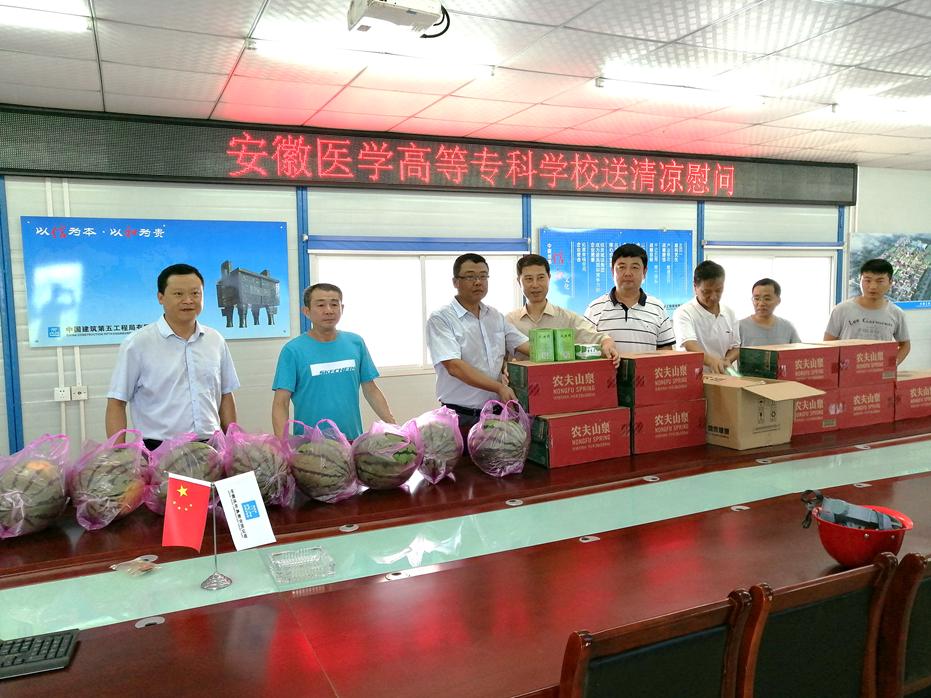8月7日,校党委副书记、纪委书记刘东义赴新桥校区建设工地慰问各参建单位,校工会主席朱锐、机关党总支书记张家前、监察审计处处长王志华陪同慰问。