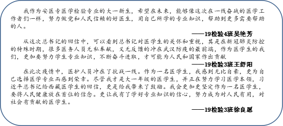 “希望你们珍惜学习时光,练就过硬本领,毕业后到人民最需要的地方去,以仁心仁术造福人民特别是基层群众。