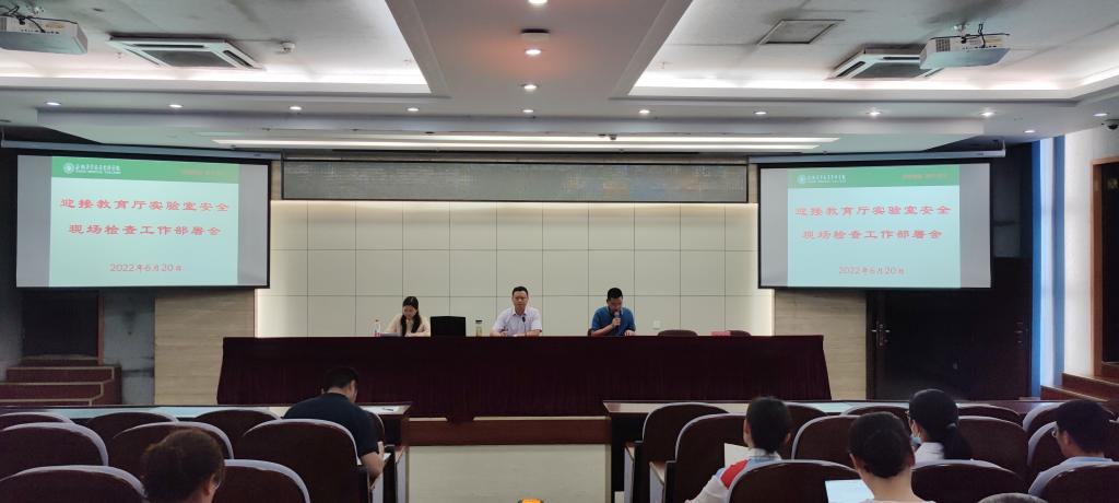 检查结束后,召开了迎接省教育厅2022年实验室安全现场检查工作部署会,会议由校党委委员、副校长严继贵主持,实验室与设备管理处、保卫处(安全办)、总务处以及各学院院长、副院长、实验室管理人员参加了会议。