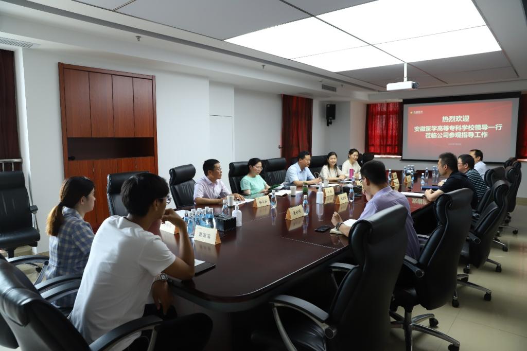 为深入贯彻落实党中央、国务院关于高校毕业生就业工作的决策部署,扎实推进“高校书记校长访企拓岗促就业”专项行动,持续深化校企合作和产教融合,助力毕业生高质量充分就业,7月20日下午,校党委委员、副校长严继贵带队,校党委委员、教务处处长朱霖,实验室与设备管理处及药学院负责人等一行5人赴安徽天星医药集团有限公司和合肥大药房连锁有限公司考察交流。严继贵一行受到安徽天星医药集团公司总经理倪华安、合肥大药房连锁有限公司总经理刘正梅等的热情接待,并分别进行了座谈交流。