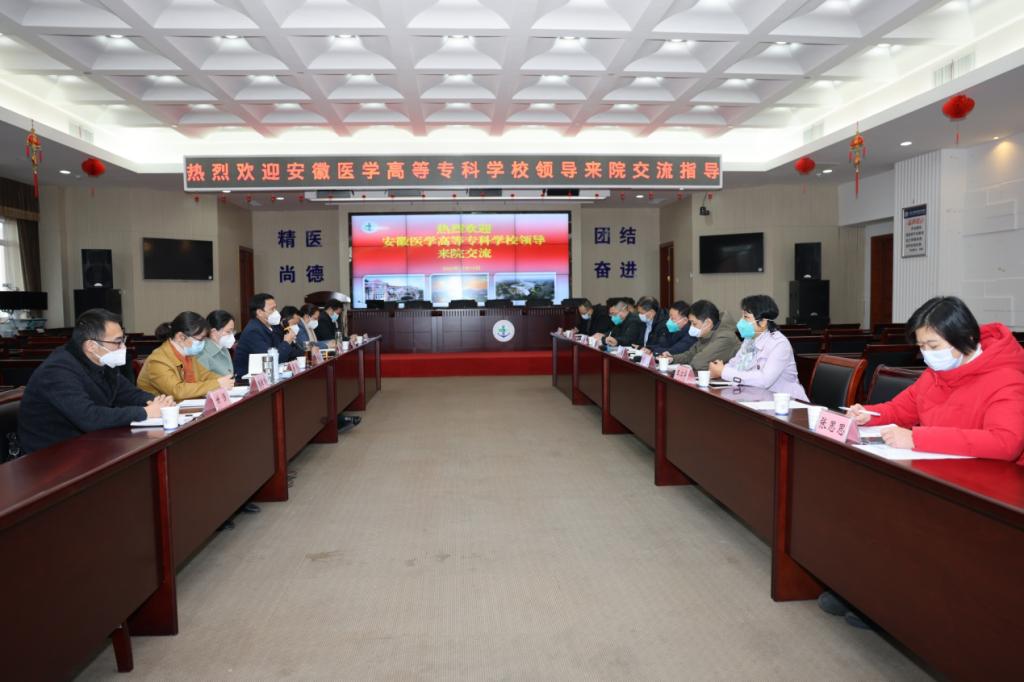 近日,党委副书记、校长郑为超,党委委员、副校长严继贵等一行7人赴中国人民解放军安庆医院考察并召开座谈会。中国人民解放军海军安庆医院院长胡炳德,副院长胡以发、张云峰及相关处室负责人出席会议。会上,双方就医学相关专业人才培养、学科建设、专业建设医教研协同发展等进行了深入交流和探讨。