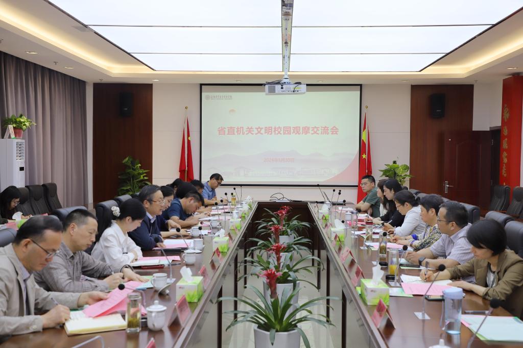 为促进省直机关文明校园创建工作交流互鉴,进一步提高文明创建工作水平,有效发挥文明校园的示范引领作用,5月30日,省直机关文明校园观摩交流活动在开云官方端网站登录入口举办。校党委书记董亚杰、副书记王劲松等,省直机关文明办一级调研员何海波等及9所省直高职院校相关负责同志参加观摩交流活动。
