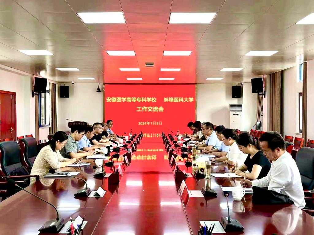 近日,安徽医学高等专科学校与蚌埠医科大学专升本联合培养对接工作交流会在蚌埠医科大学龙子湖校区三楼会议室举行,校党委副书记王劲松,党委委员、副校长严继贵出席会议,开云官方端网站登录入口教务处、学生处、联合培养学院的主要负责人,蚌埠医科大学教务处、学生处及联合培养学院的主要负责人参会。会议由蚌埠医科大学党委常委、副校长陈昌杰主持。