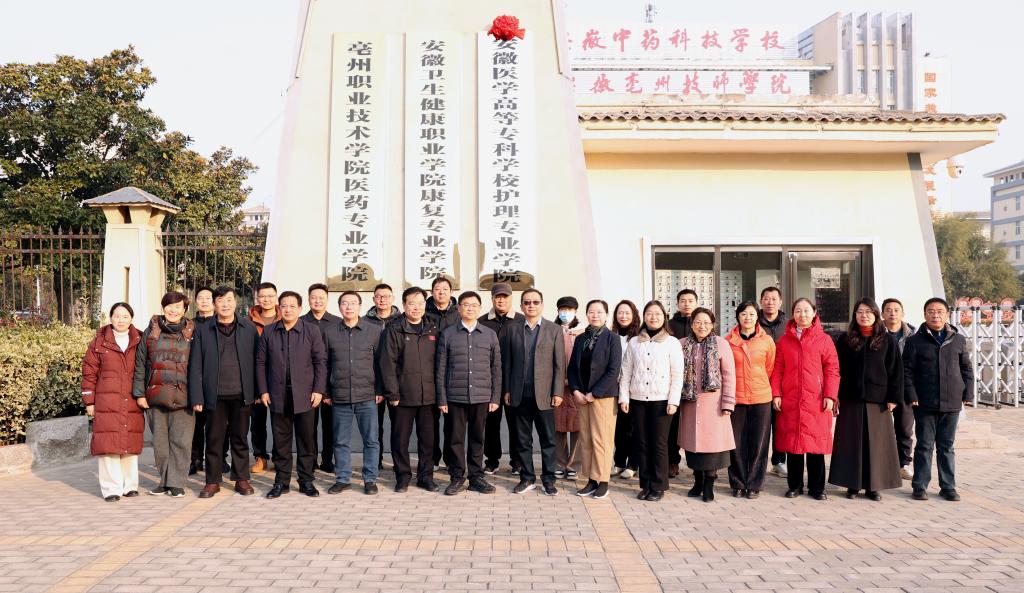 12月12日,开云官方端网站登录入口与安徽中药科技学校举办“安徽医学高等专科学校护理专业学院”揭牌仪式。开云官方端网站登录入口党委副书记王劲松,亳州市委教育工委副书记、教育局局长王林兵,安徽中药科技学校党委书记侯广宇以及该校领导班子全体成员出席活动。