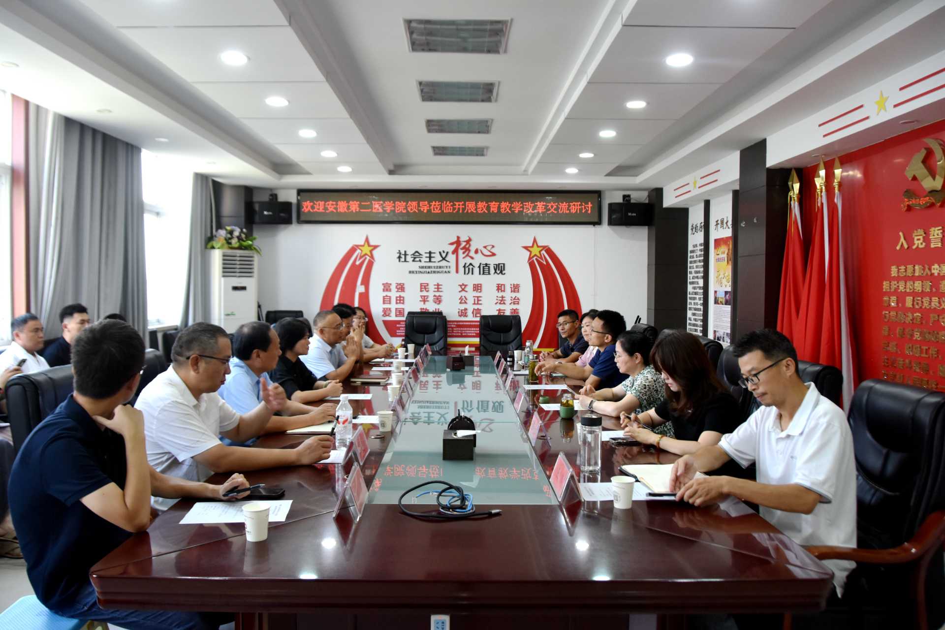 界首市人民医院院长肖岳代表医院党委对吴文涌一行表示衷心感谢。他指出,院校合作是提升医学教育质量、培养应用型医疗人才的关键路径。医院将认真落实本次调研指导意见,系统谋划、扎实推进各项举措,以建设高水平、有特色的附属医院为首要目标,切实履行医疗卫生人才培养的社会责任,奋力开创医院各项事业发展新局面。
