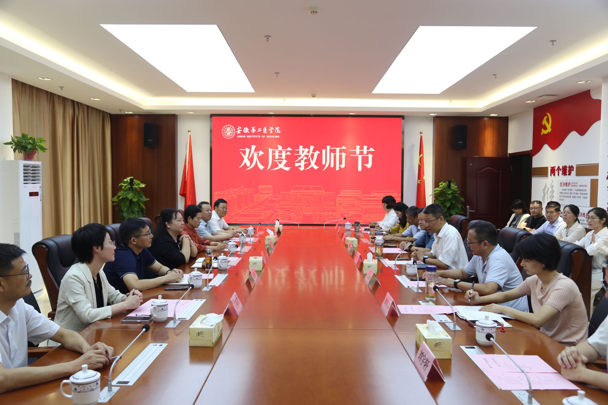 2025年9月9日上午,在第41个教师节即将来临之际,寿县县委副书记、县长孙奇志一行来到学校新桥校区,开展教师节慰问活动,校党委书记姚文兵,校领导王劲松、严继贵接待,与优秀教师代表们座谈。