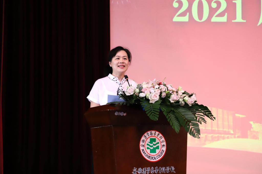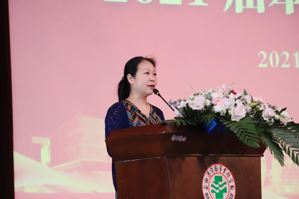 教师代表护理学院刘莉回顾了两年来与同学们相处的点滴,勉励同学们保持平和心态、脚踏实地,坚持学习,充实自己,学会做人做事,不断提高自己。