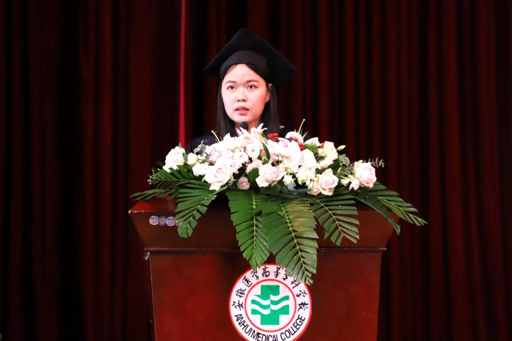 毕业生代表项晓婷同学从个人经历中分享了自己的感悟,同学们共勉,对学校的培养、老师们的辛勤付出表示感谢,表示在今后的学习和工作中,将作为护理行业的一员,为健康事业做出自己的一份贡献。