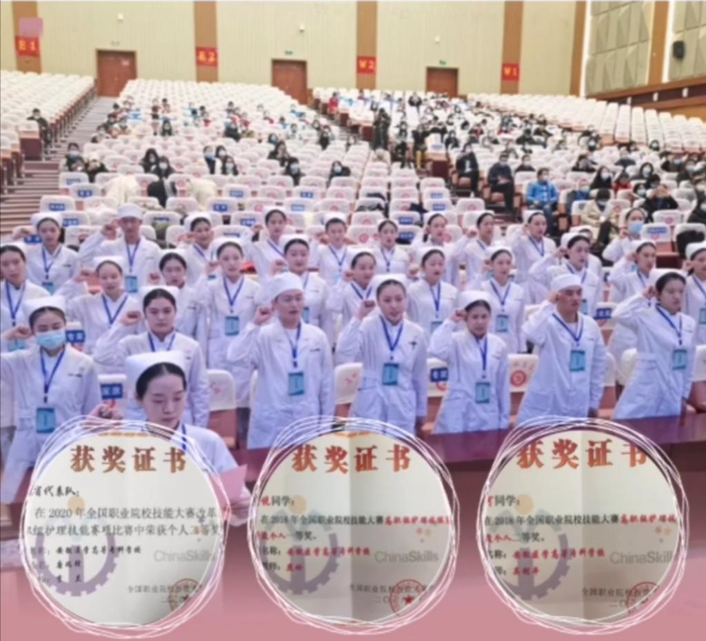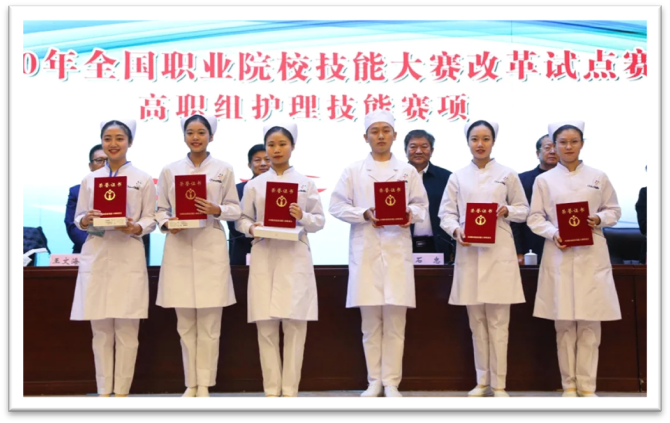 博观而约取,厚积而薄发,长期坚持的积累与努力也带来了硕果累累的成绩。近三年来,护理学部学生在全国和全省护理技能大赛等相关护理专业赛事中屡获佳绩:在全国职业院校护理技能大赛(高职组)个人赛中,获得一等奖1人、二等奖2人;在安徽省护理技能大赛(高职高专组)中,获得个人赛一等奖12人,团体一等奖2个;在2019年安徽省首届助产技能大赛中,荣获团体二等奖。