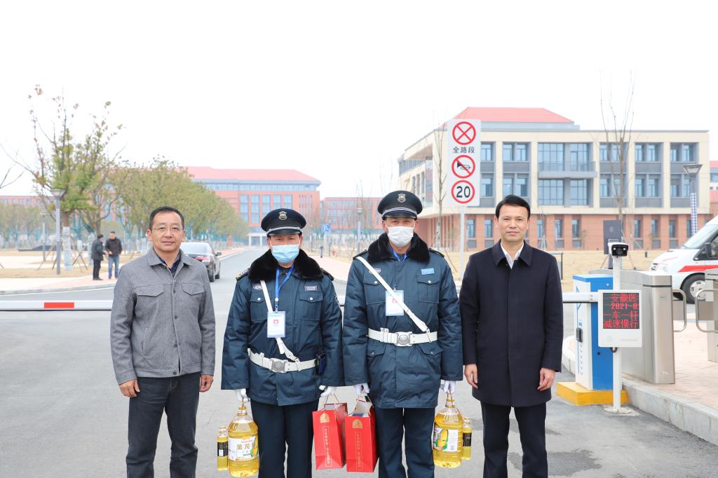 校领导前往援疆综合楼、学校警卫室、安全监控室、物业办公室等地,亲切慰问在岗人员,详细了解值班安排及设备运行等情况,嘱咐值班人员要始终保持高度责任心,做好疫情防控、防火防盗等工作,全力保障好寒假期间留校师生的安全,确保校园平安祥和。