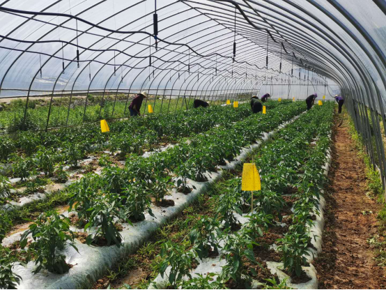 2017年安徽医学高等专科学校扶贫工作队驻村以后,与村两委积极谋划,在壮大村集体经济和带动贫困户发展特色产业增加收入上做文章。利用荒滩开辟出连片平整新增耕地,再搭配上安徽医学高等专科学校援助50万元修建的连接基地的漫水桥,完善了基地配套工程。同时,运用土地参股分红的方式将基地以整体流转给实力企业。在农技中心的技术支持下,带动贫困户种植螺丝椒、芦笋、香椿等市场热销的有机蔬菜。贫困群众在基地或就近打工或承包大棚种植有机蔬菜,大大增加了收入。