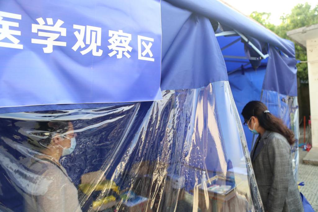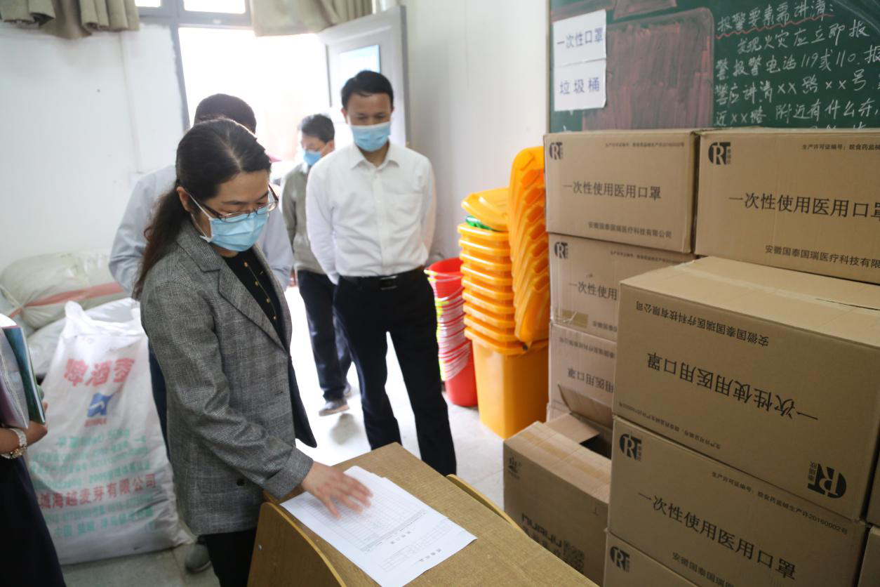 听取汇报后,检查组一行查阅了相关资料,并实地检查了学校学生食堂、宿舍、防疫物资储备室、医学观察区等重点区域。