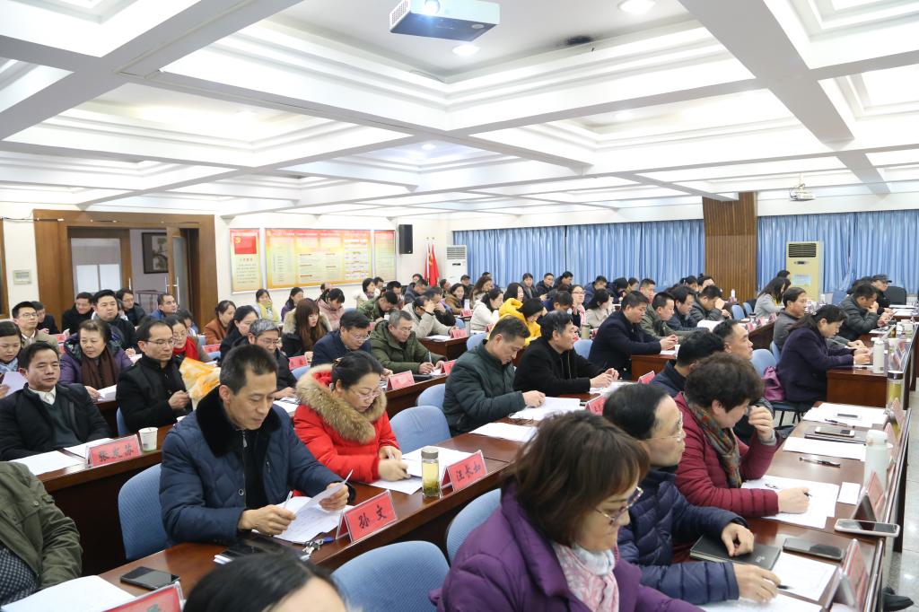 1月9日下午,校党委副书记、校长郑为超在行政楼四楼大会议室主持召开2019年综合考核述职与民主测评会。校党委副书记、纪委书记刘东义,校党委委员、副校长王劲松、王润霞、曹元应出席会议。各单位负责人、其他未担任内设机构负责人的科级干部、教职工代表参加会议。
