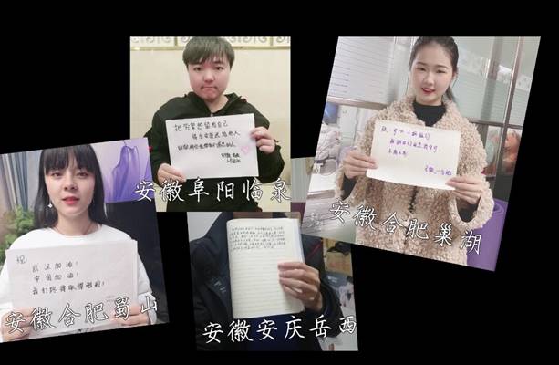 学子们在家乡在线同唱一首歌,录制祝福视频,手写感恩卡片,向医护人员致敬。同时面对新冠疫情全球蔓延表达自己的关心,期待春暖花开,安徽等你归来。