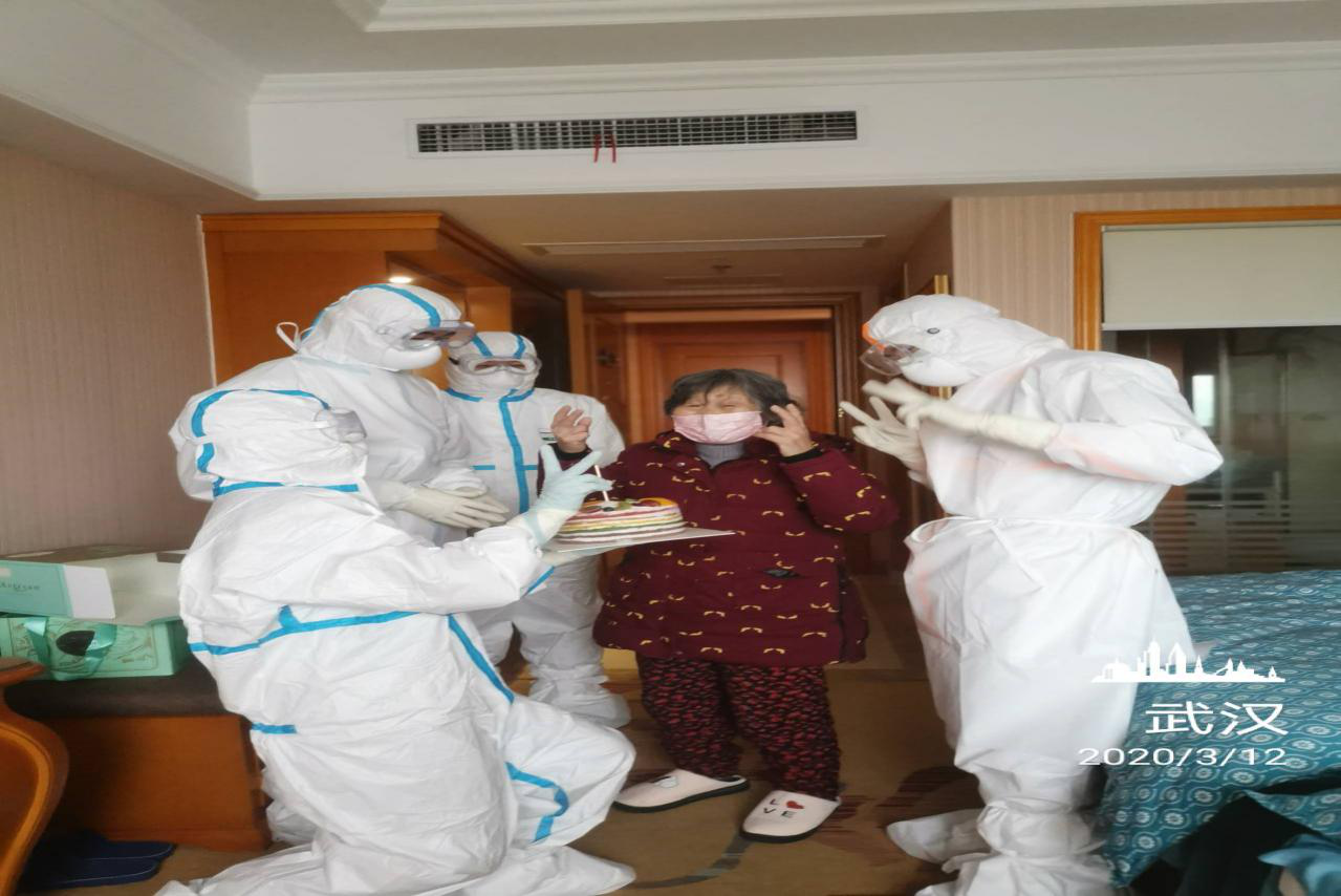 老吾老以及人之老,幼吾幼以及人之幼。在日常工作中,庄莹医者仁心,视留观人员为亲人,通过微信群播报天气、转发暖心微视频等方式激励隔离人员以积极心态面对暂不确定的等待过程,给予患者心理和情感支持。14岁的初三学生王扬(化名)父母都因确诊被收治,看着孩子情绪低落,庄莹每天多次到他房间,送去酸奶、水果等食物,促膝长谈,帮他与父母视频连线。她写小纸条鼓励孩子:“别害怕,困难是暂时的,就把我当成你姐姐”。独自在隔离点的老人黄女士心中,庄莹就如同女儿。工作之余,庄莹时常守护在老人身边,嘘寒问暖,充当跑腿。得知老人生日,庄莹和同事们自发组织为老人过寿,老人的女儿得知后连连发来微信感谢:“太感谢你了,要不是你在,我实在不知道我母亲该如何是好”!