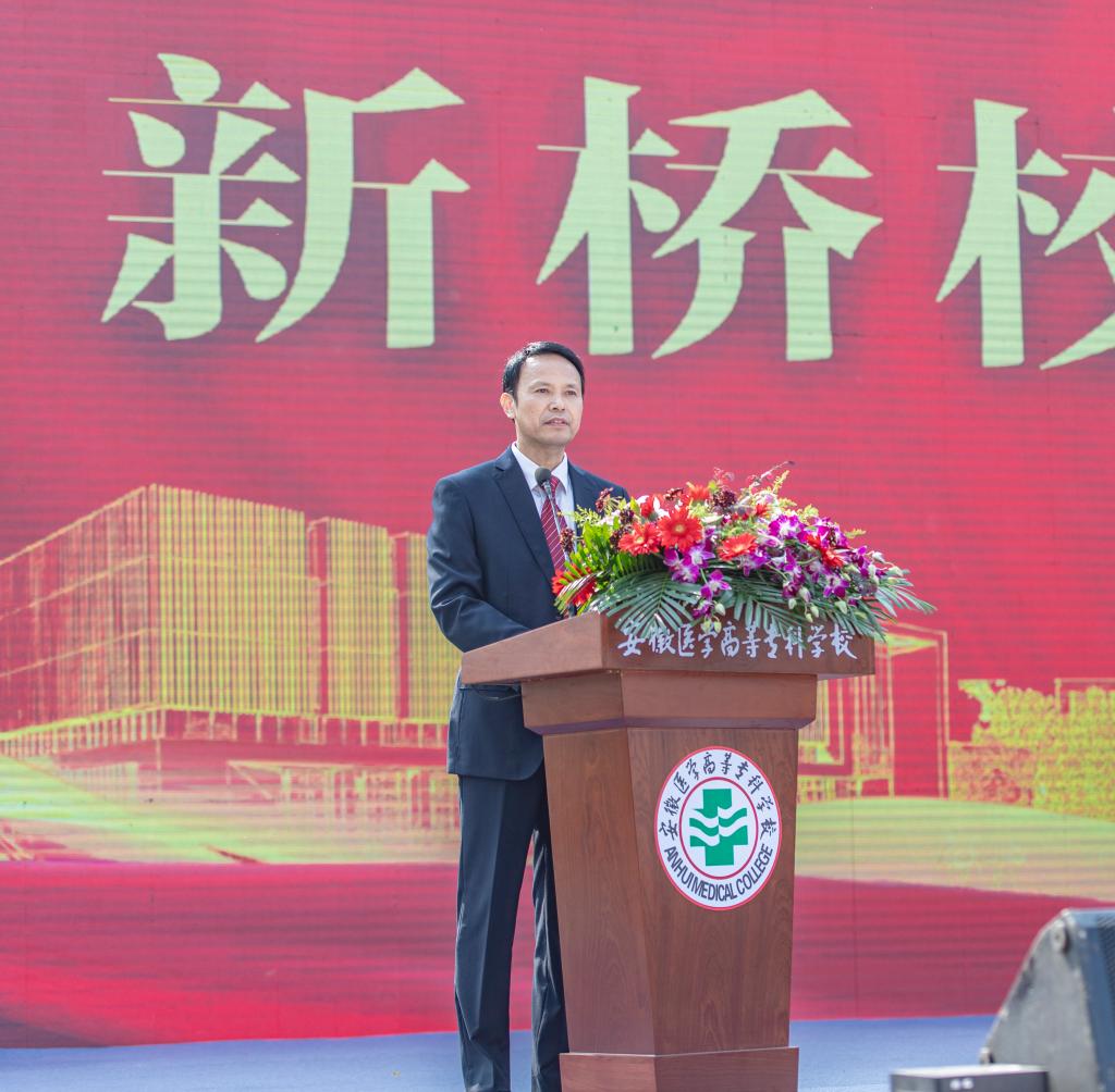 高俊文指出,作为省卫生健康委直属的专科学校,六十五年来,安徽医专以立德树人为根本,秉承“厚德精医、博学笃行”校训,着力推进内涵发展、特色发展和创新发展,探索实践了新时代“中国特色高水平高职学校和专业群”特色发展之路,取得了明显成效,已成为安徽省基层医疗卫生应用型技能人才培养的重要基地,为我省经济社会发展、卫生健康事业做出了积极贡献。新桥校区的正式启用,标志着安徽医专建设、改革和发展进入了新起点,希望学校深入贯彻落实习近平总书记关于教育的重要论述和全国全省教育大会精神,聚焦健康中国健康安徽战略需求,积极融入长三角一体化发展,大力弘扬优良办学传统,进一步树高标杆、明确思路,突出特色,全面推进中国特色高水平高职学校建设,着力培养德智体美劳全面发展的应用技能型医药卫生人才。希望学校在聚焦立德树人根本任务,着力构建德智体美劳全面发展的高水平人才培养体系、紧扣服务发展需求,打造卫生健康技能创新服务平台、把握改革创新主线,与时俱进更新教育理念创新医学教育上下功夫,以新校区启用为契机,抢抓职业教育发展和卫生健康能力提升机遇,树立新航标,科学谋划“十四五”规划,布局新发展,奋力开启学校高质量内涵式发展新征程。