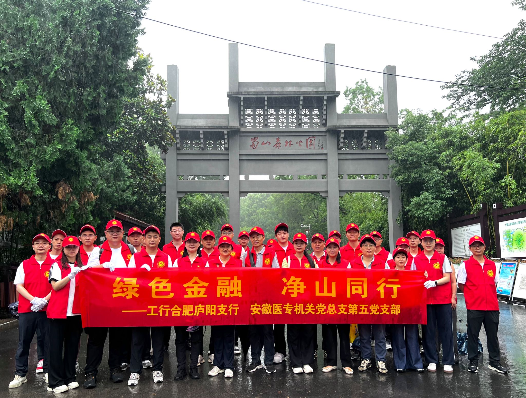 为深入贯彻落实习近平新时代中国特色社会主义思想,践行"绿水青山就是金山银山"理念,6月8日,安徽医学高等专科学校机关党总支第五支部(财务处)与工商银行合肥庐阳支行,在合肥市大蜀山森林公园开展结对共建“绿色金融,净山同行”环保志愿服务主题党日活动,紧密围绕“生态优先、绿色发展”的理念要求,切实把理论成果转化到为民办实事的具体行动中。