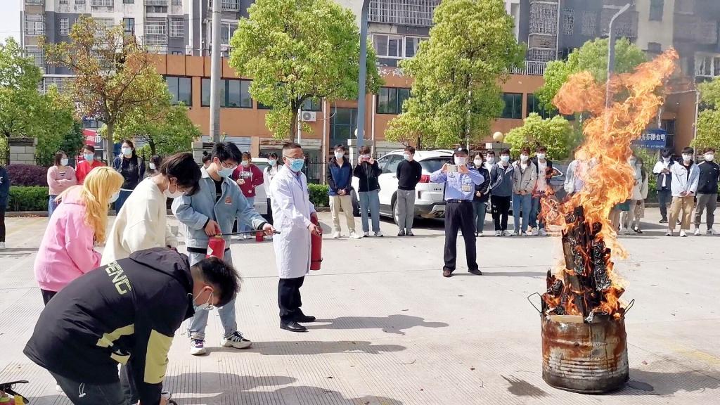 接着张建刚副院长带领学生进行了灭火实战演练,每个人都主动加入到了灭火阵营中。