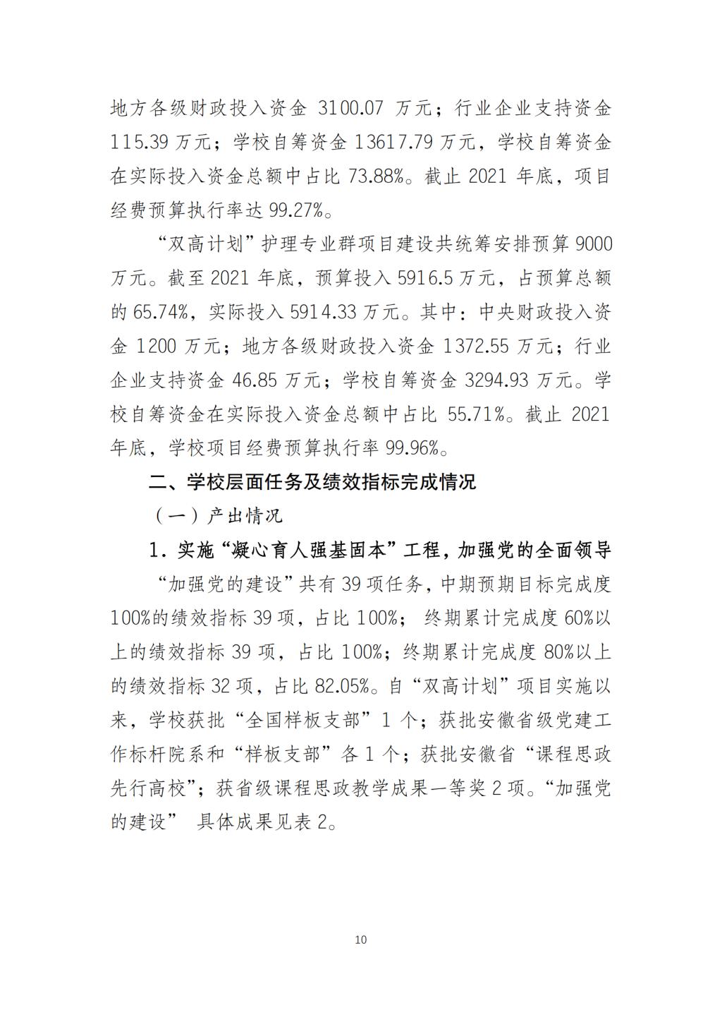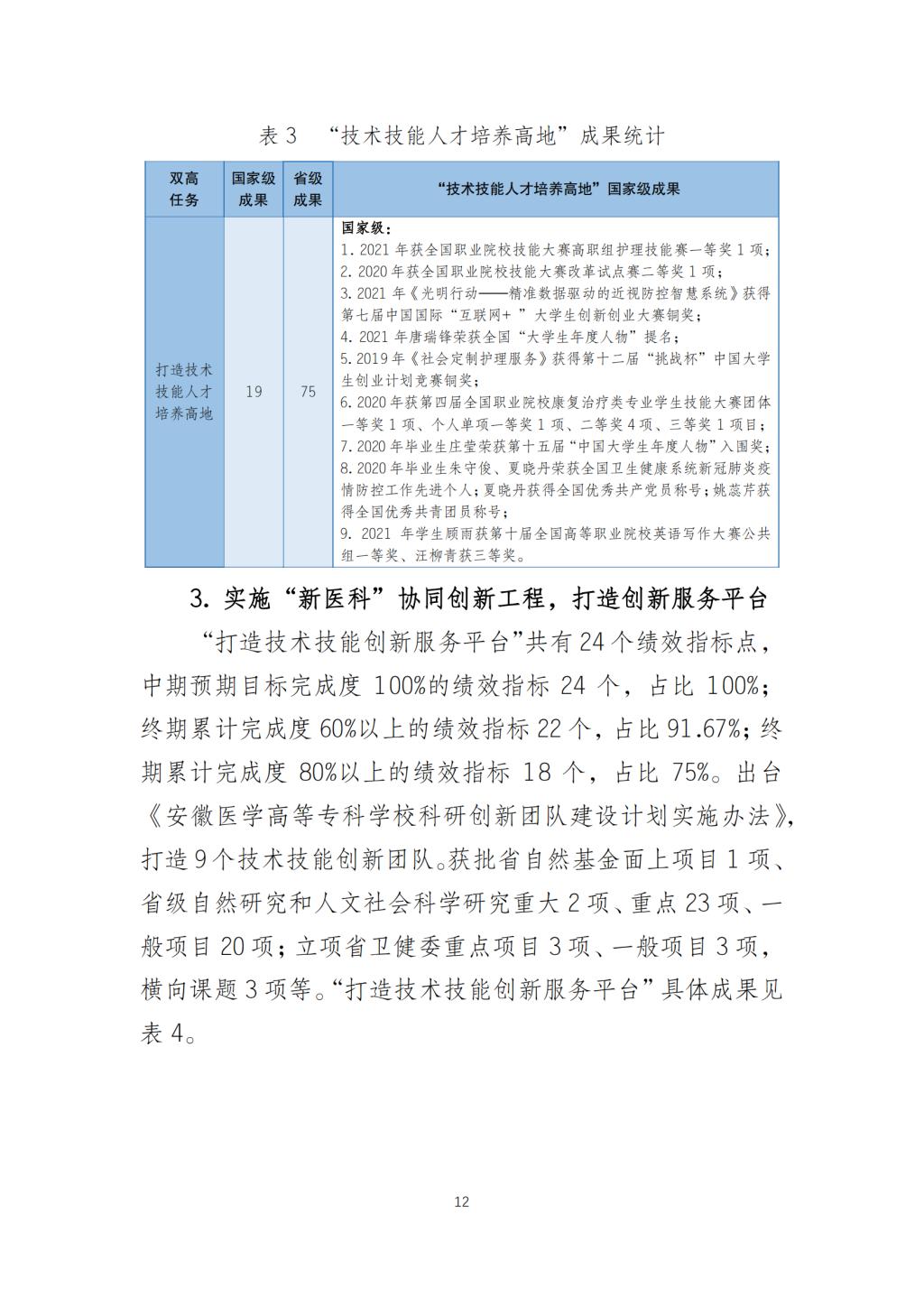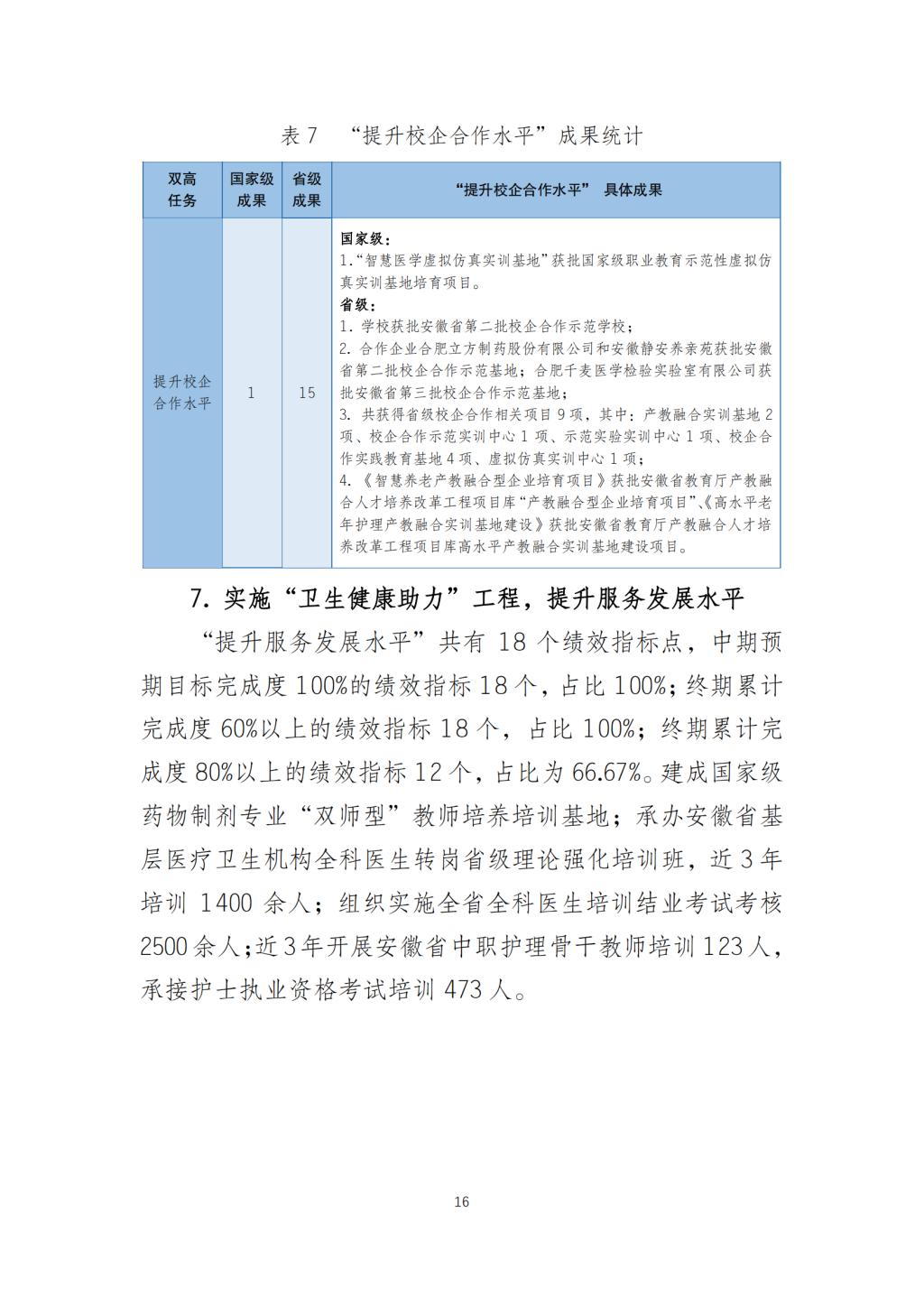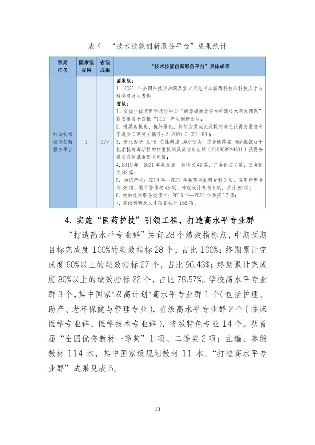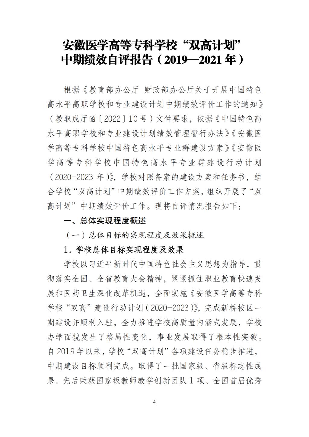 安徽医学高等专科学校“双高计划”中期绩效评价自评报告(2019—2021年)