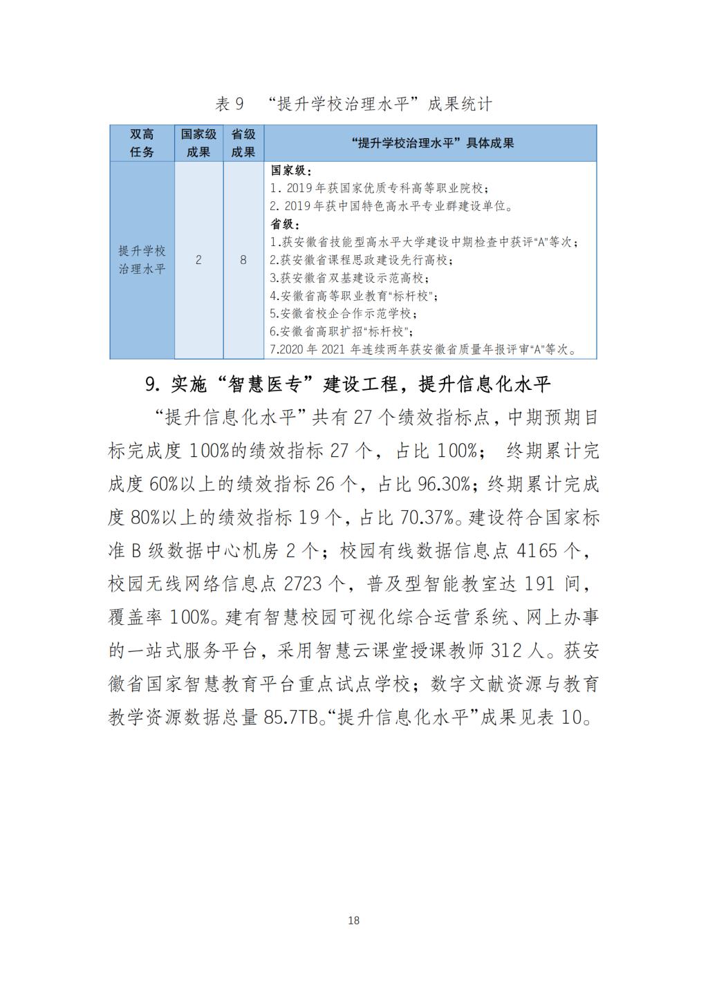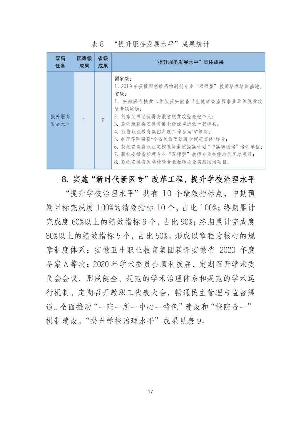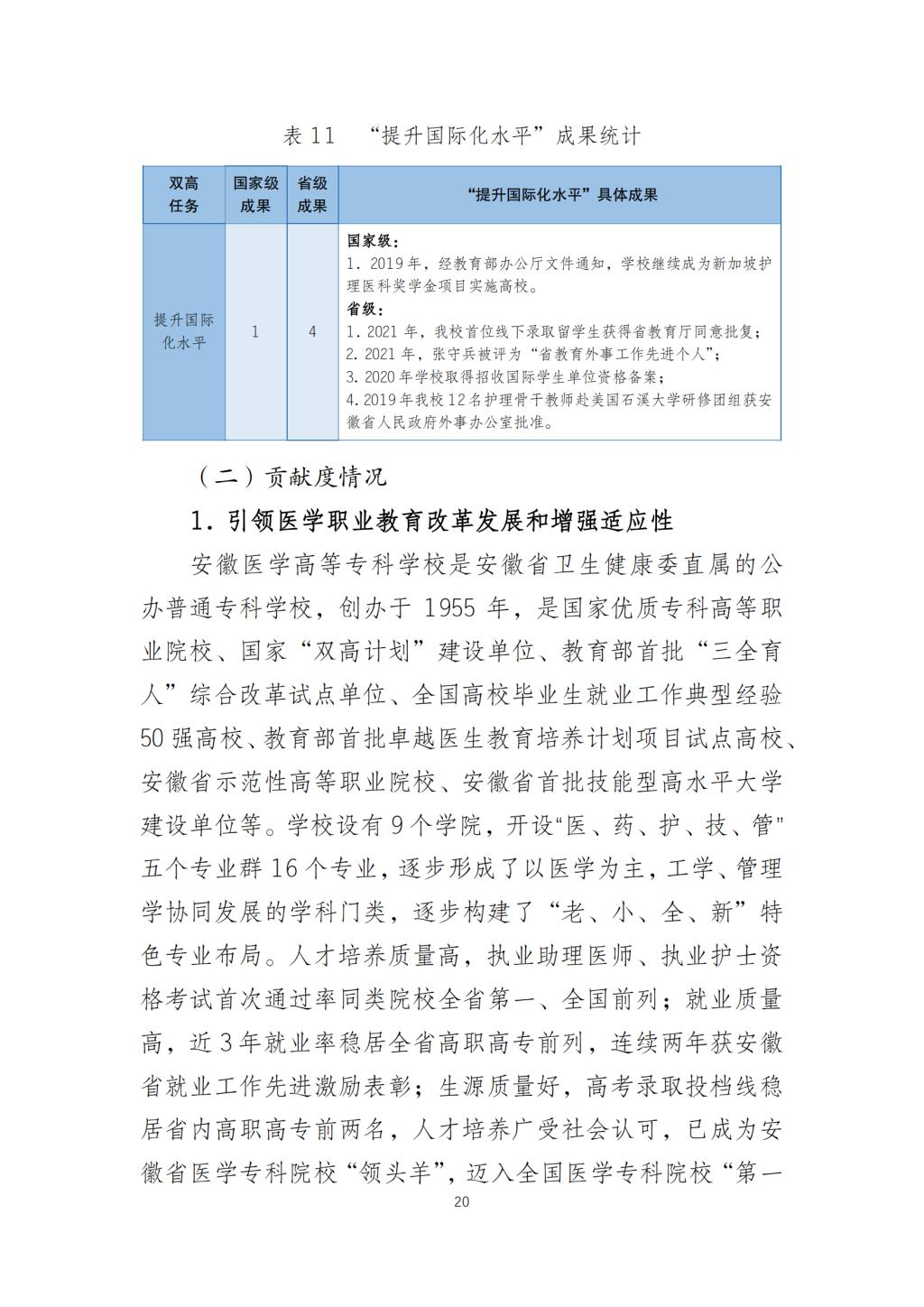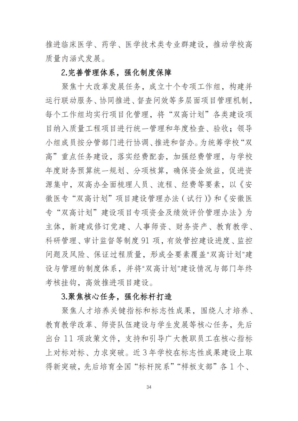 安徽医学高等专科学校“双高计划”中期绩效评价自评报告(2019—2021年)