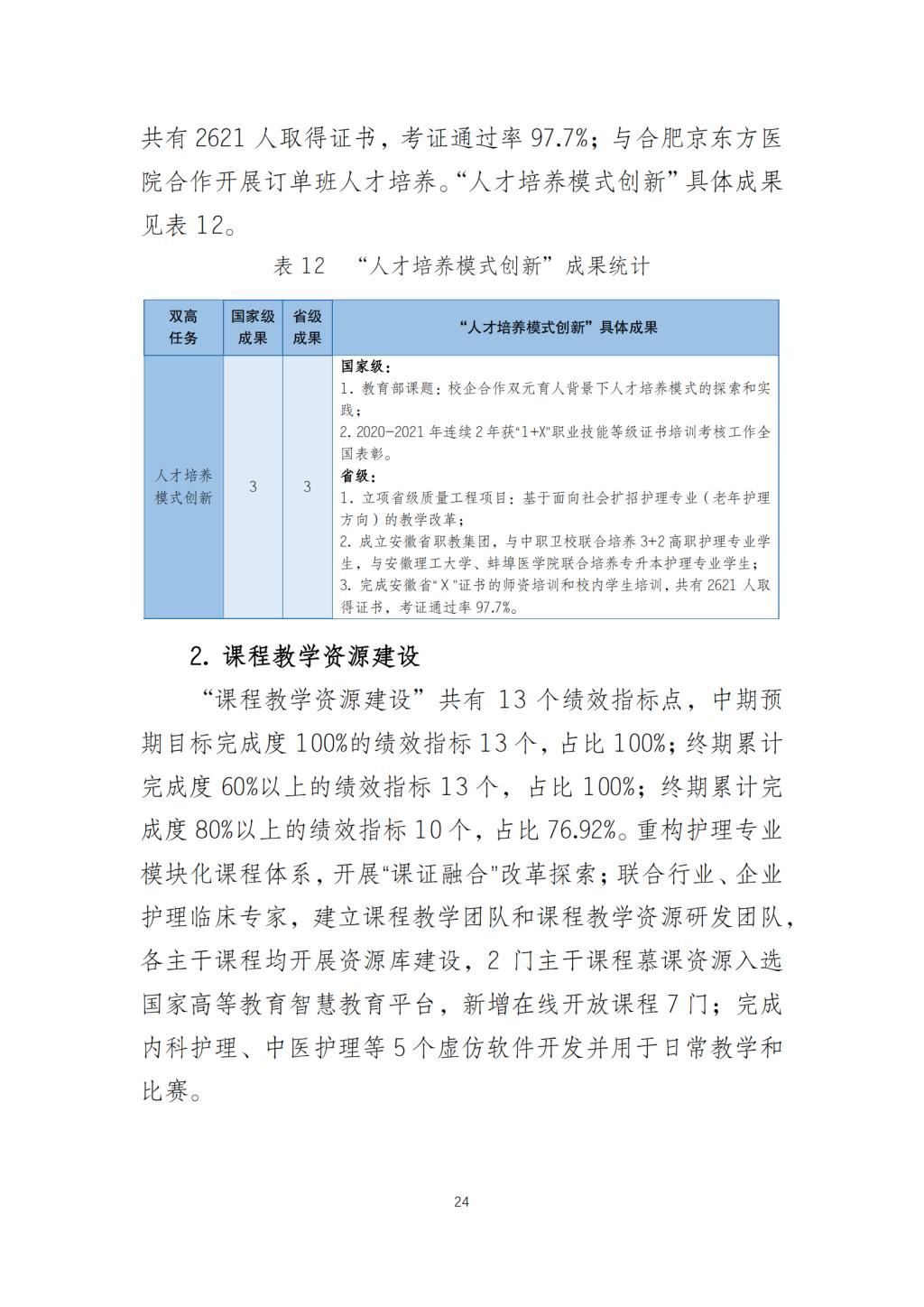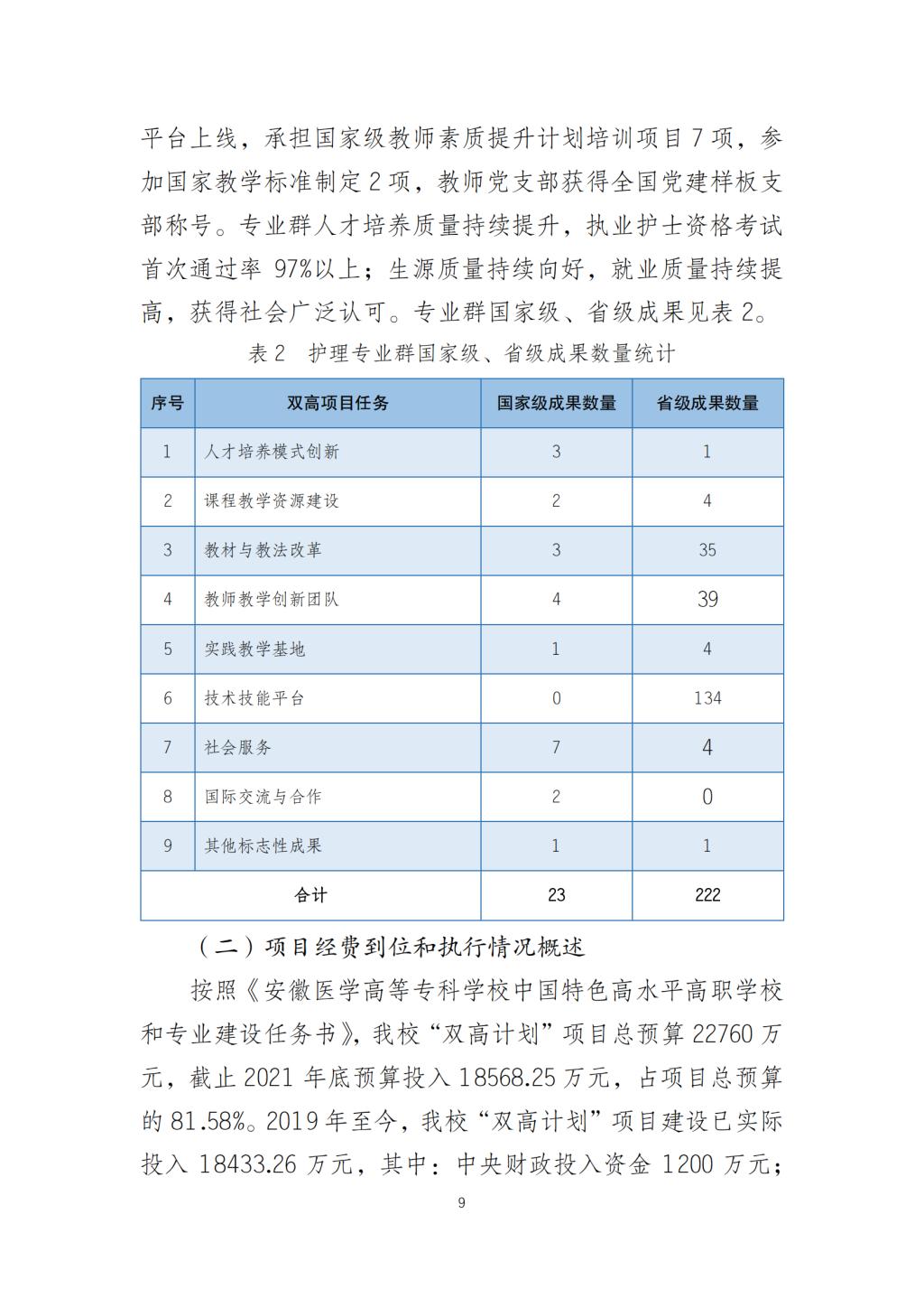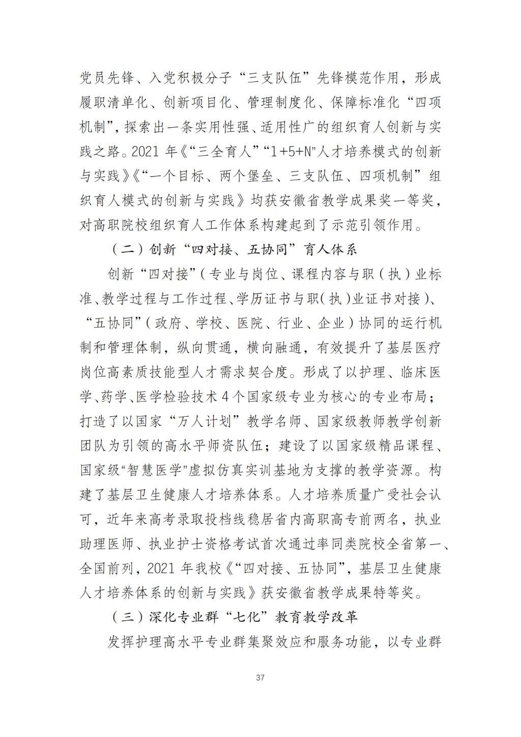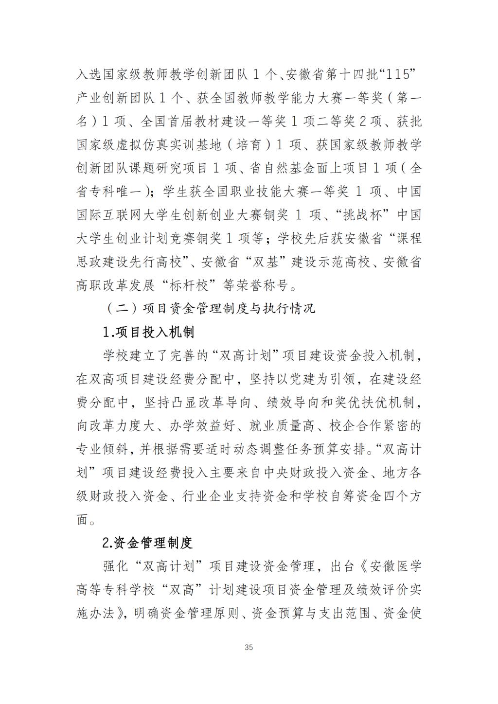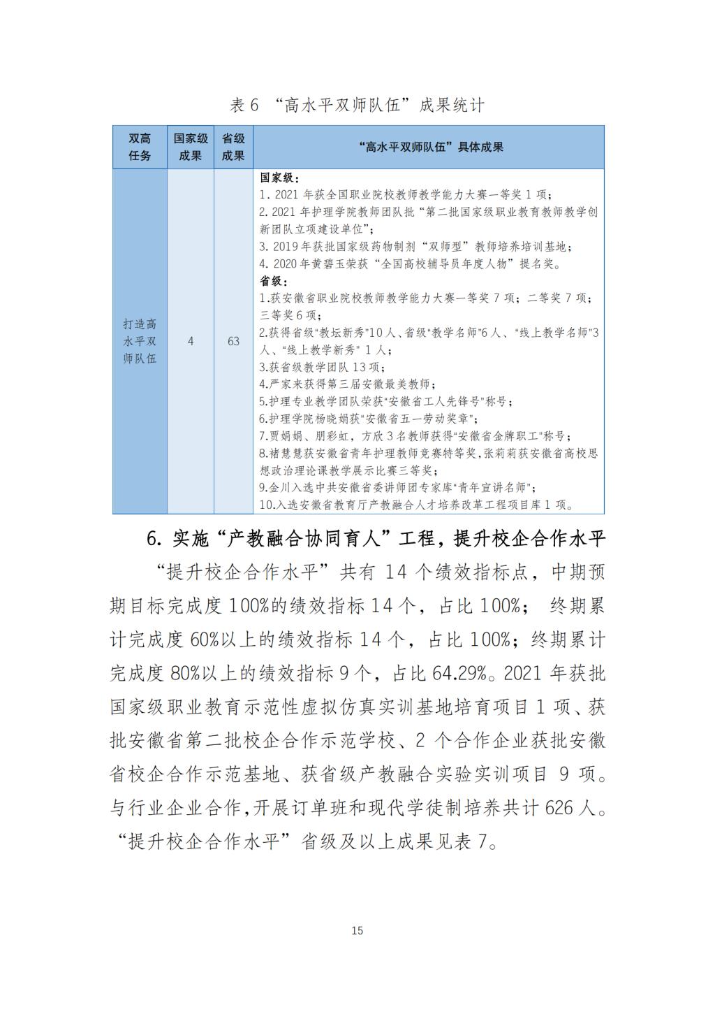 安徽医学高等专科学校“双高计划”中期绩效评价自评报告(2019—2021年)
